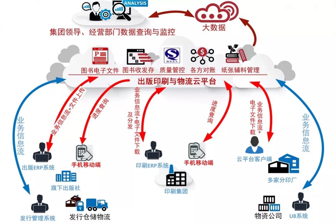 云平台管理系统可支撑出版集团实现印刷业务的统一采购管理,消除各子公司信息系统间的信息壁垒,实现跨子公司的业务流程重组,提高印刷环节的工作效率和工作质量。